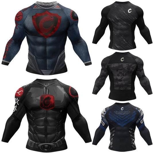 Bjj Rash Guards para hombre Jiu Jitsu MMA camiseta Rashguard No Gi manga larga hombres boxeo correr entrenamiento camisetas Strech Sport Tees
